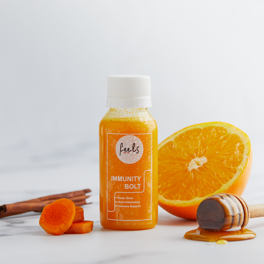 Fresh turmeric, Orange, Manuka honey, Cinnamon